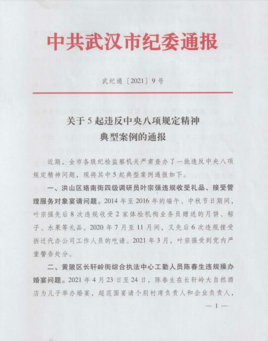 市紀委關(guān)于5起違反中央八項規(guī)定精神典型案例的通報