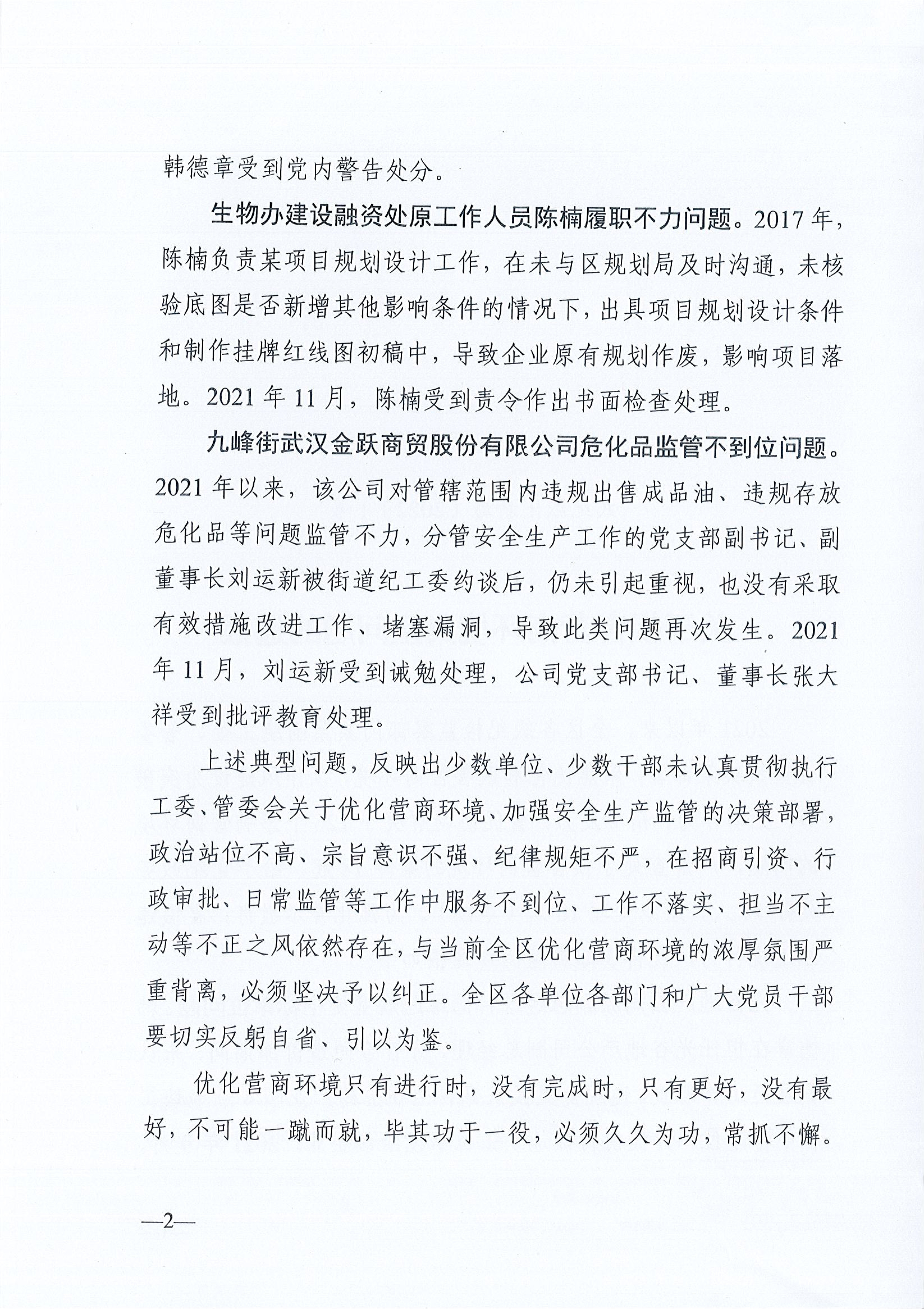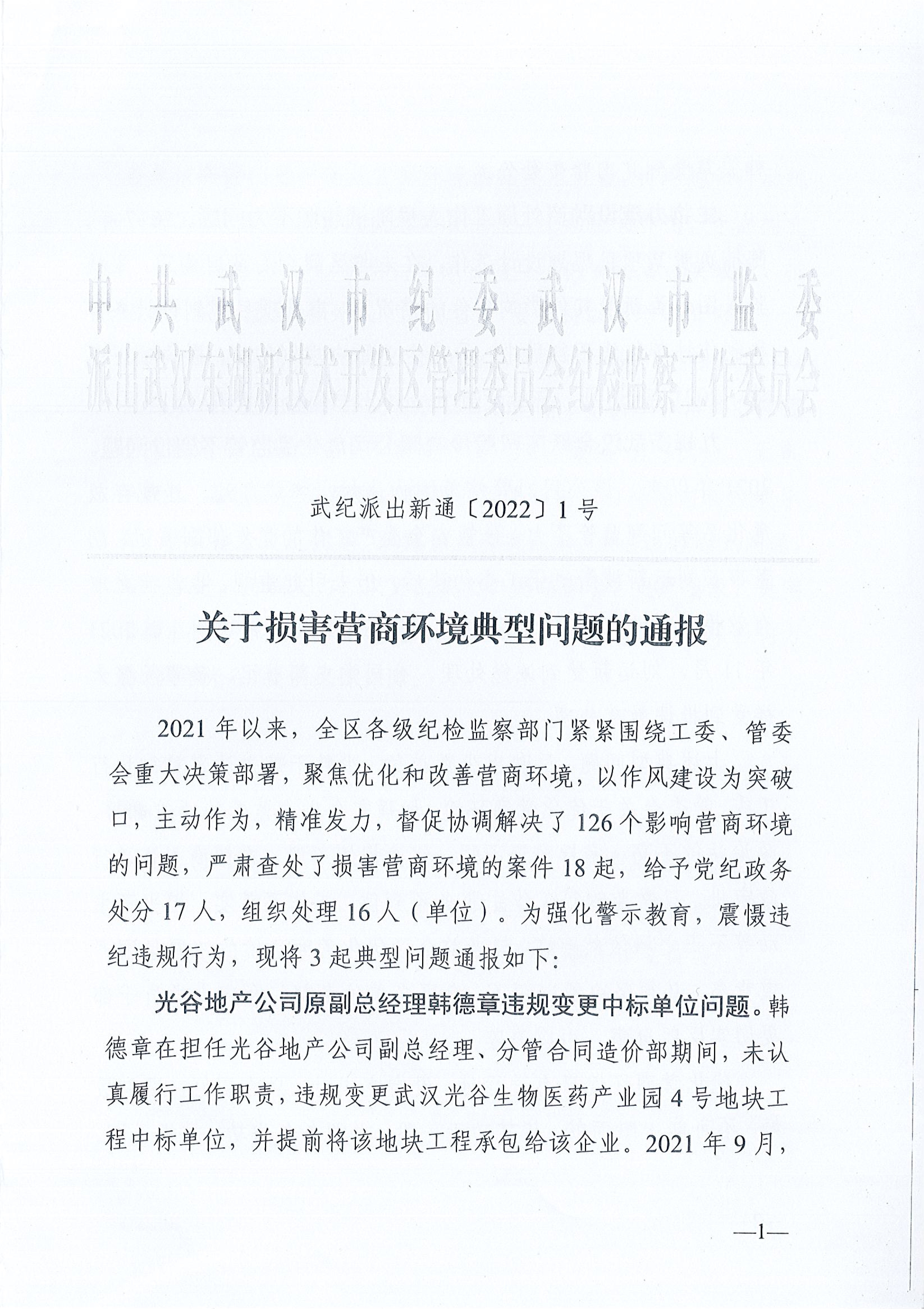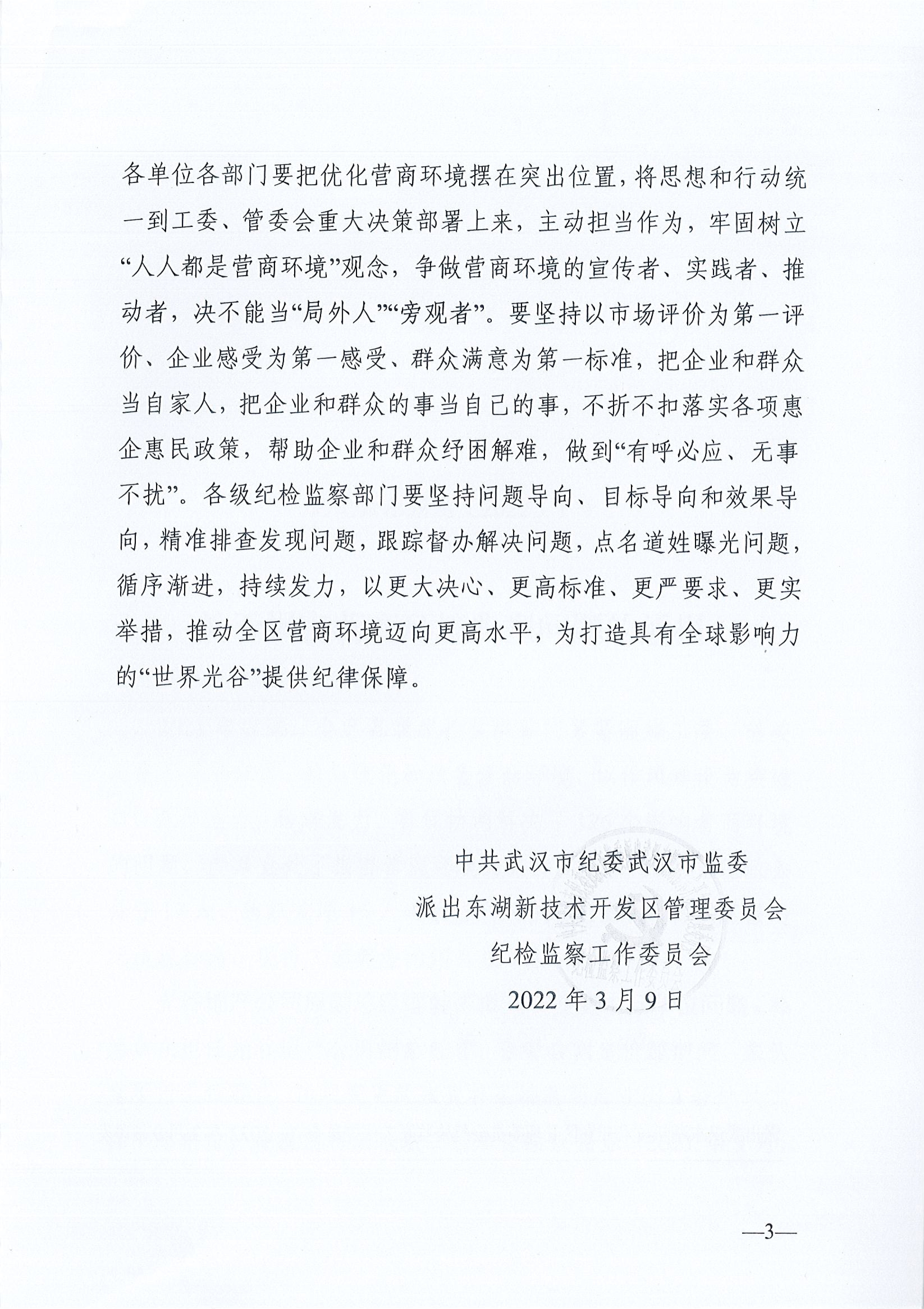 派出東湖高新區(qū)紀(jì)檢監(jiān)察工委關(guān)于損害營(yíng)商環(huán)境典型問題的通報(bào)